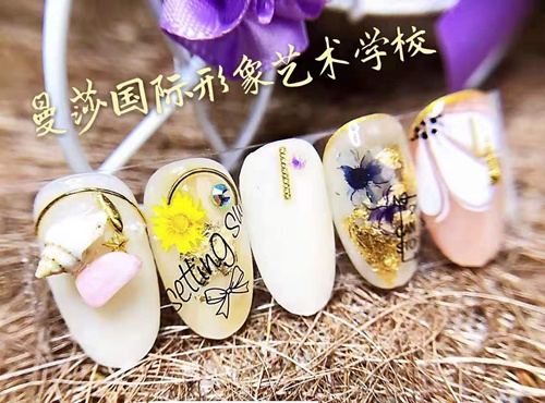 学习内容包含了保养,护理,彩绘,光疗,水晶,琉璃,3D雕花,延长,法式,晕染,植绒,琥珀,海绵工艺,色彩搭配,日系,韩系……